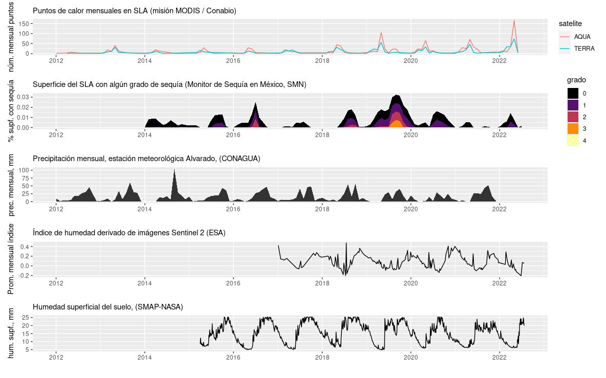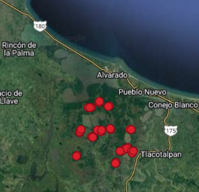 Monitoreo de hidroperiodo (cuántos meses al año pasa inundado un sitio) en el Sistema Lagunar de Alvarado. Registros mensuales en 23 sitios. Los instrumentos usados (piezómetros) eran tubos de PVC de 2 m, abiertos por ambos extremos, enterrados a una profundidad de 1 m.